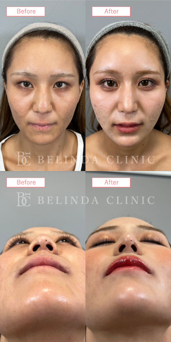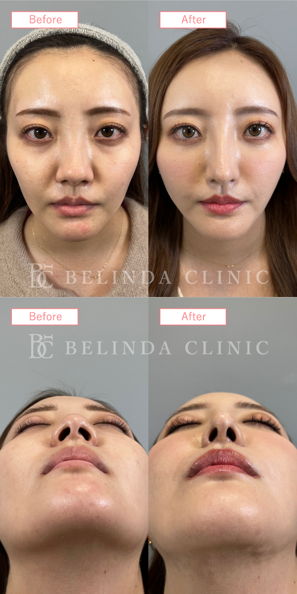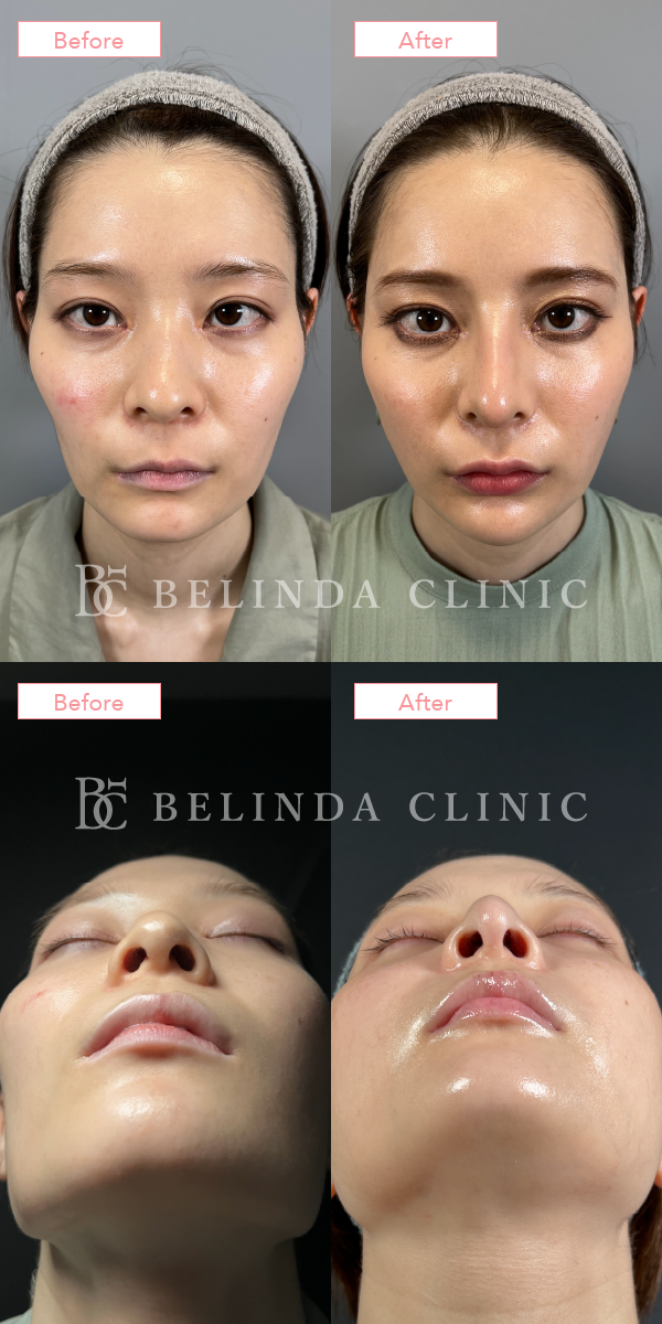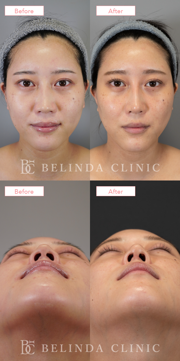 鼻先が立ち上がることによって鼻穴(外鼻孔)の形状も整えられ、下からの鼻の美しさも形成可能となります。