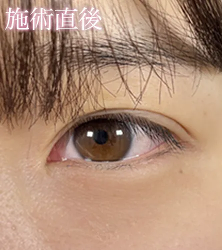 施術を行うのは初診当日でも、ご希望の日取りを再度ご予約しても可能です。まぶたへの局所麻酔を行い、麻酔が十分に効くまで安静にして頂きます。ご不安がある際はクリニックスタッフにお声掛けください。両目施術で10分程度で終了致します。