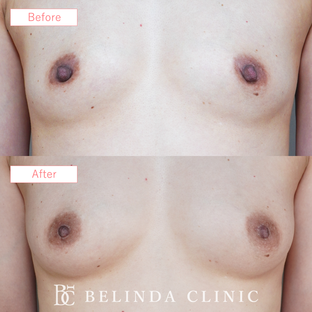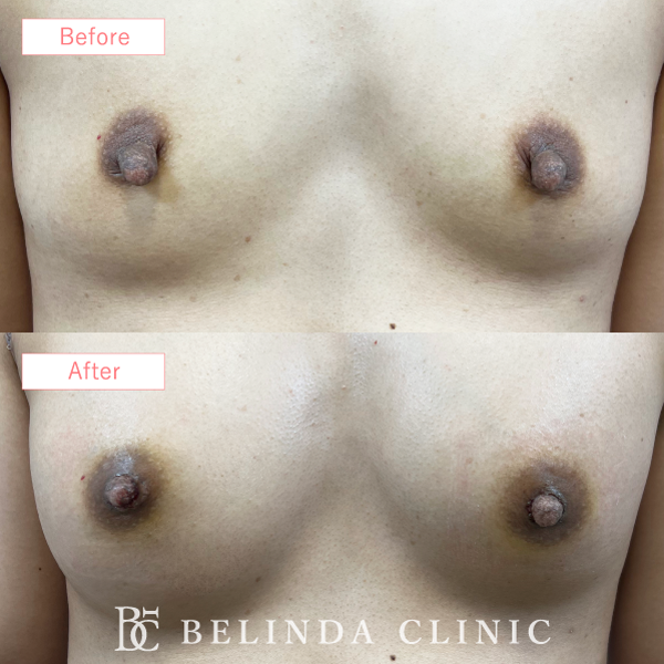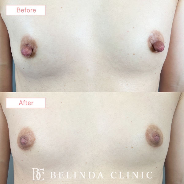 A.乳頭縮小術は単純切開法の場合、どれだけ乳頭が変形してしまっていても、一定のサイズ以下まで整えることが可能な大変優秀なバスト整形のひとつです。ぜひ本ページ掲載の症例をご覧いただき、その変化幅をご確認ください。 |