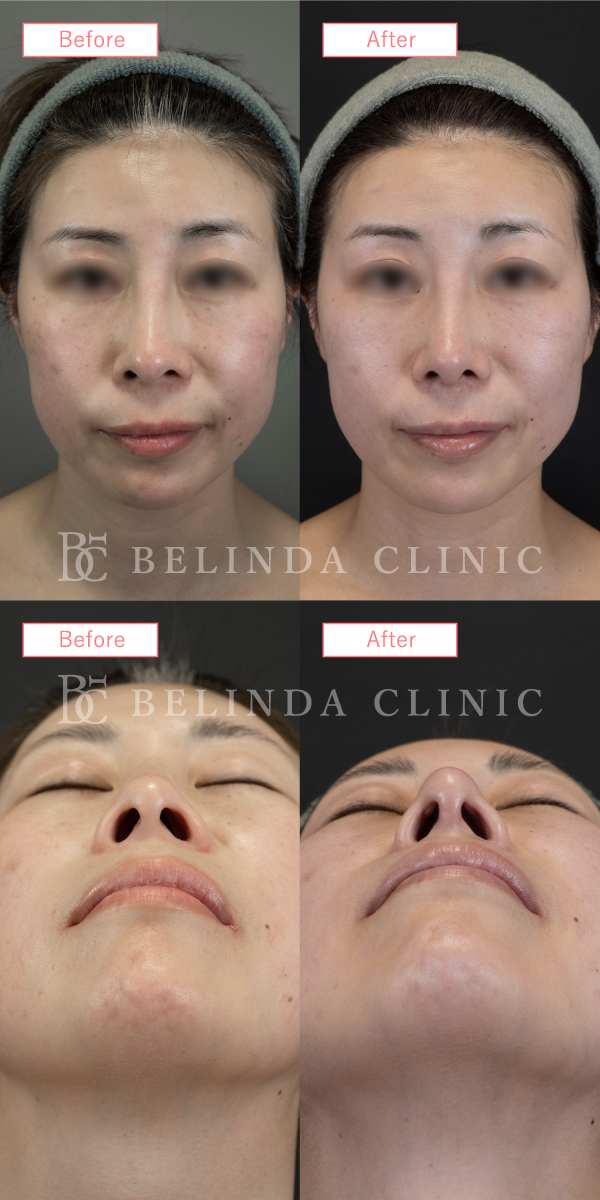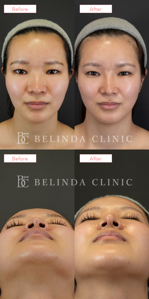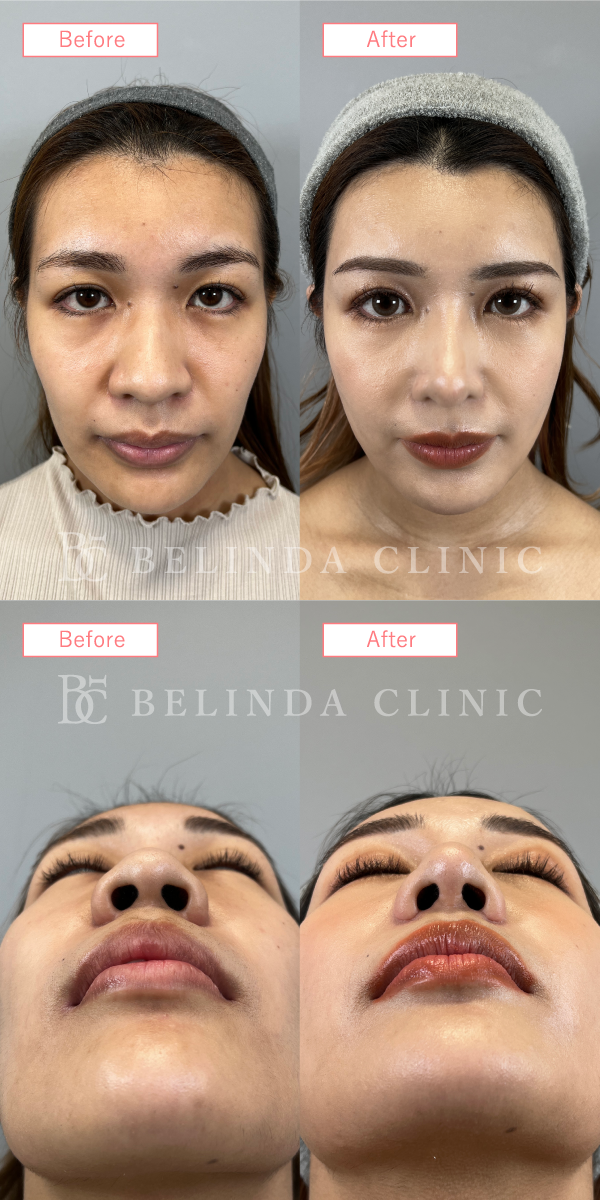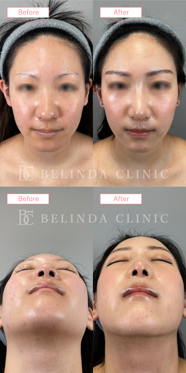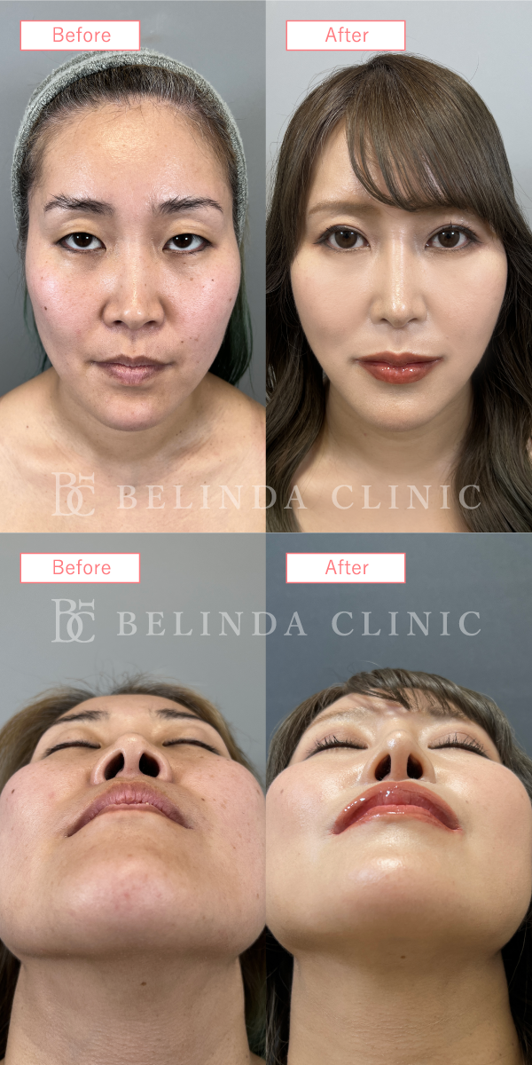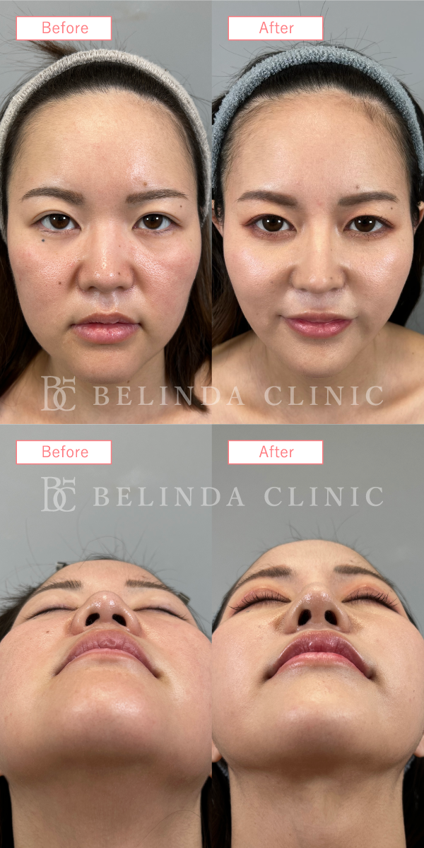 - 厚く丸みを帯びている鼻尖部(鼻先)を、切開や糸による埋没でシャープに整える施術です。団子鼻の解消や、鼻先を伸ばす治療の効果を高める際などに行われます。