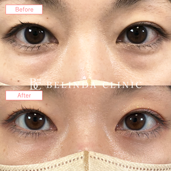 - 下まぶたの裏側をわずかに切開して目のまわりの脂肪を除去します。傷跡は外からはわからず、目の下のたるみ、たるみが原因の黒クマの改善が期待できます