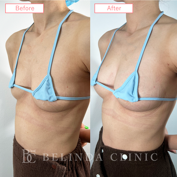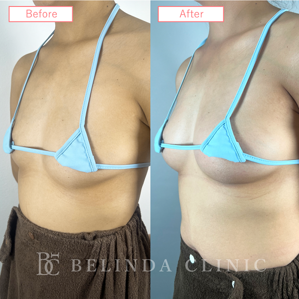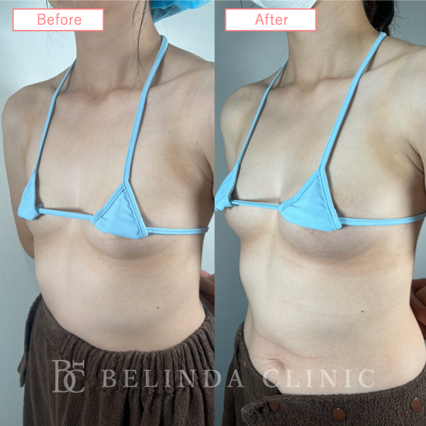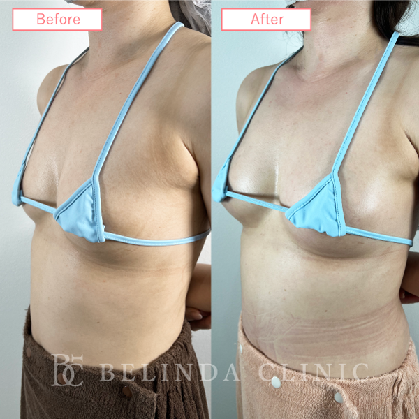 - 太ももから脂肪を吸引・採取し、不純物を取り除いてバストに注入、サイズアップを図ります。自分自身の脂肪を用いることによるナチュラルな仕上がりが魅力。