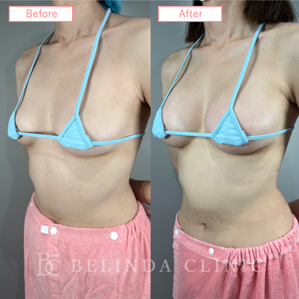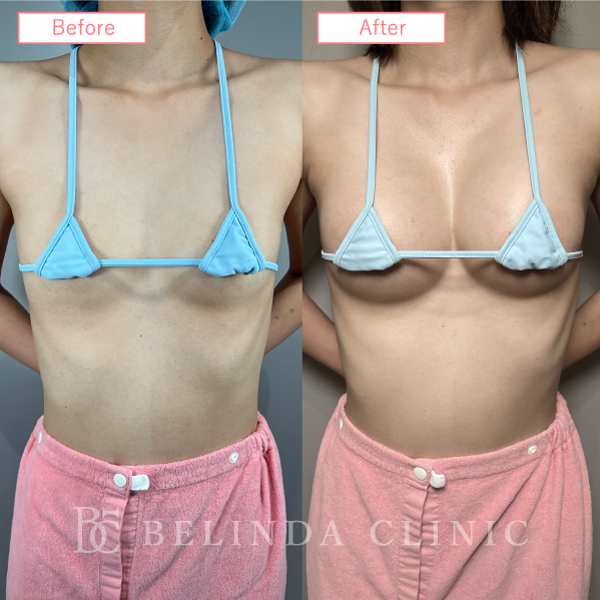- 太ももから脂肪を吸引・採取し、不純物を取り除いてバストに注入、サイズアップを図ります。自分自身の脂肪を用いることによるナチュラルな仕上がりが魅力。