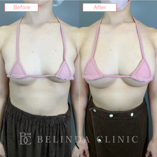 - ヒアルロン酸を注入してバストのサイズアップを図ります。左右差の解消や特定部位のボリュームアップなど、バッグ豊胸にはないデザイン性の高さも魅力。